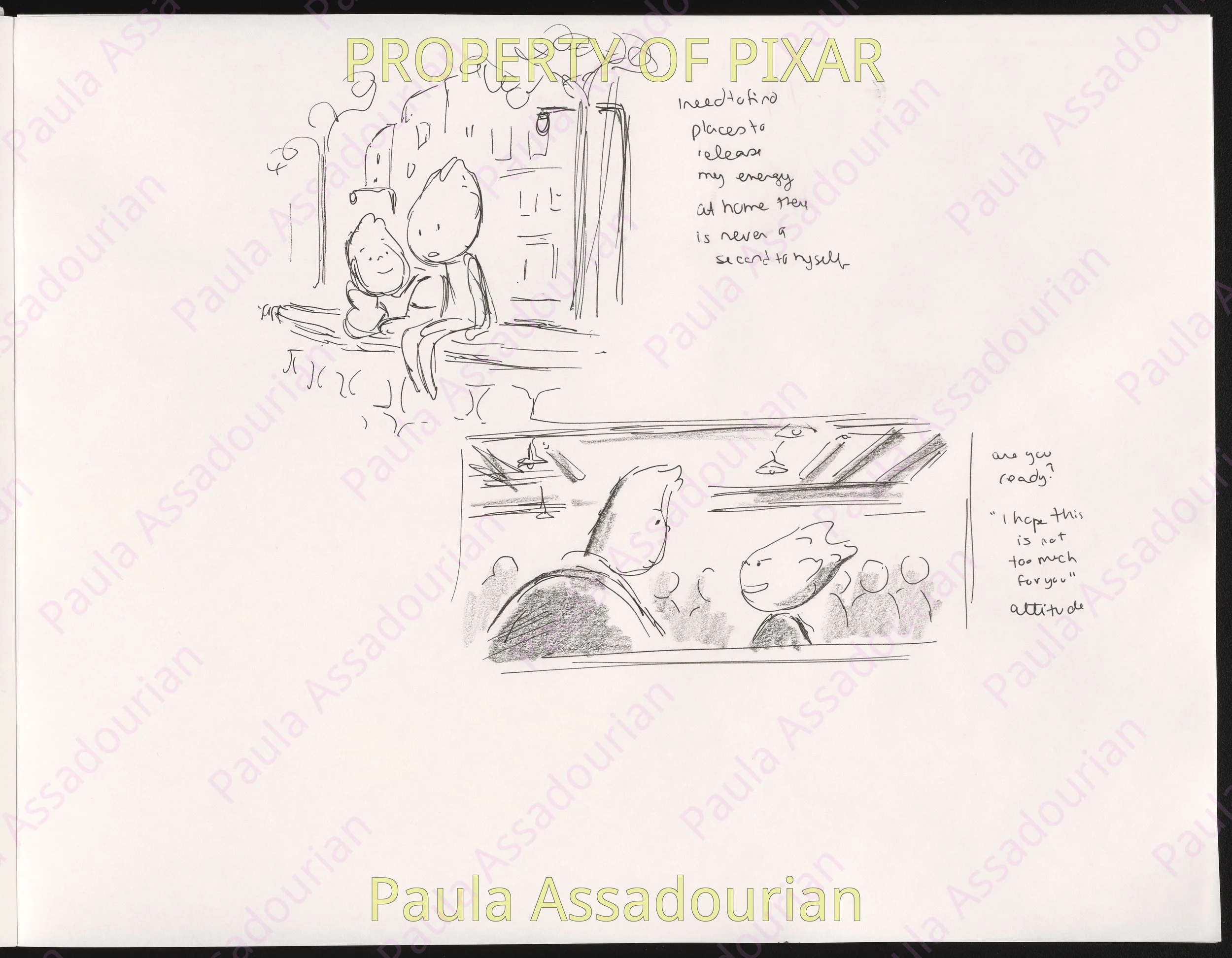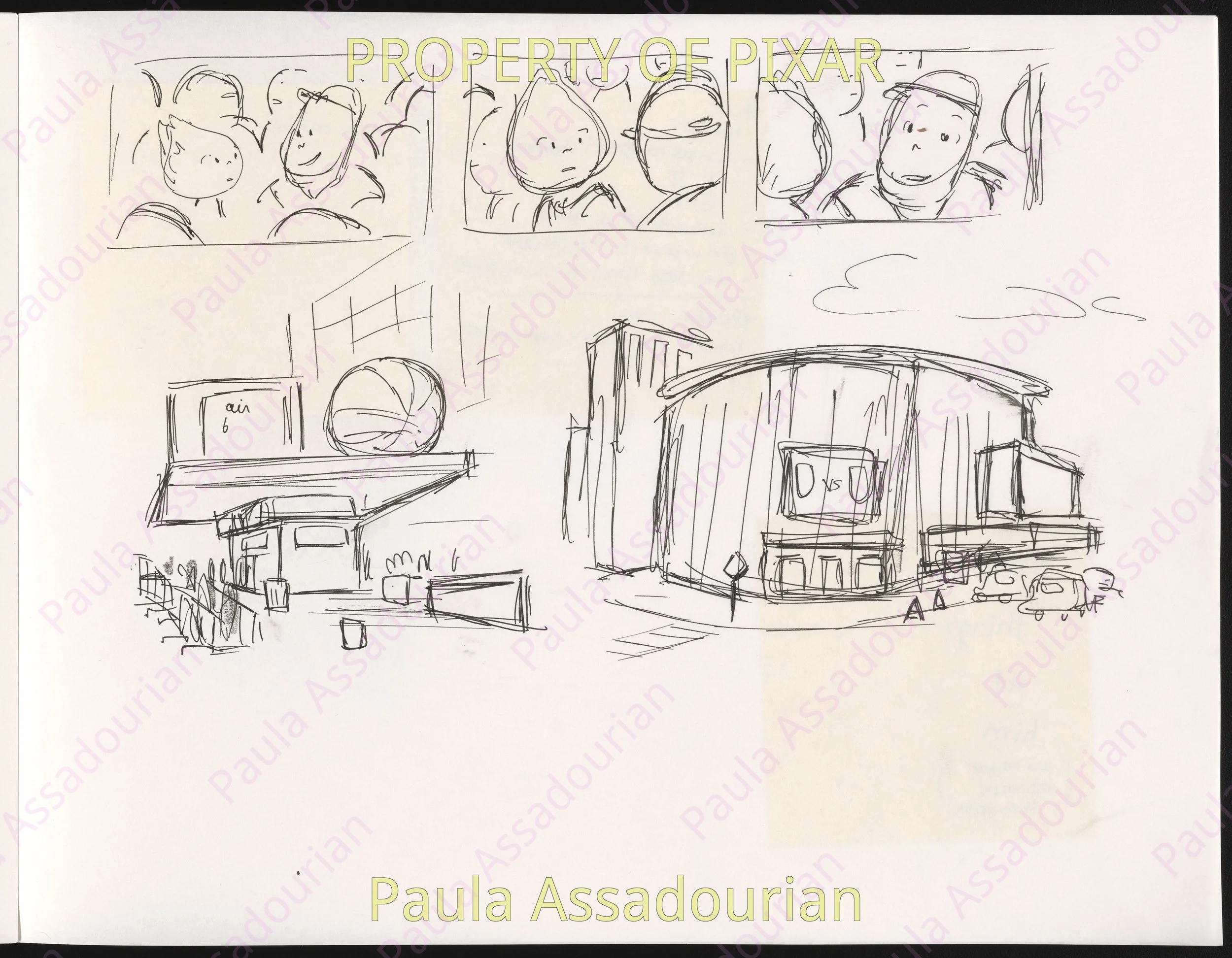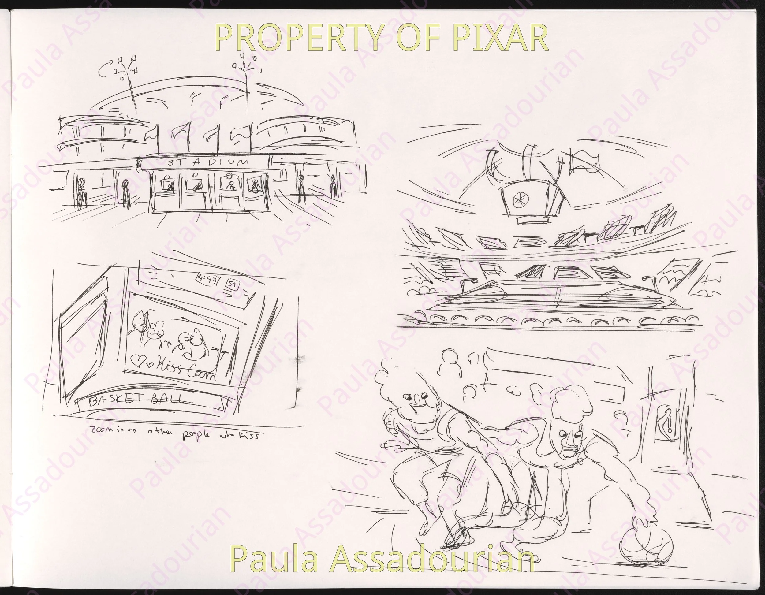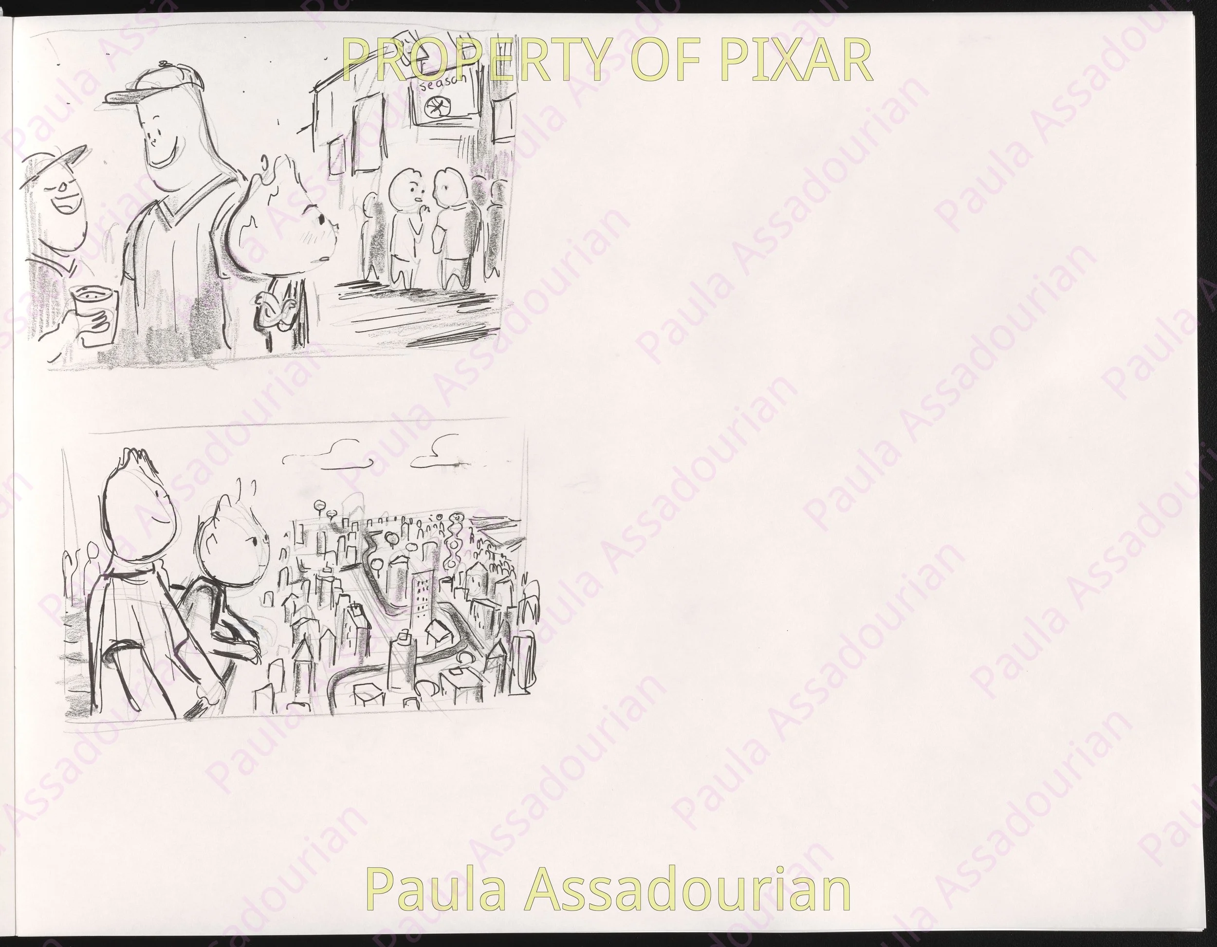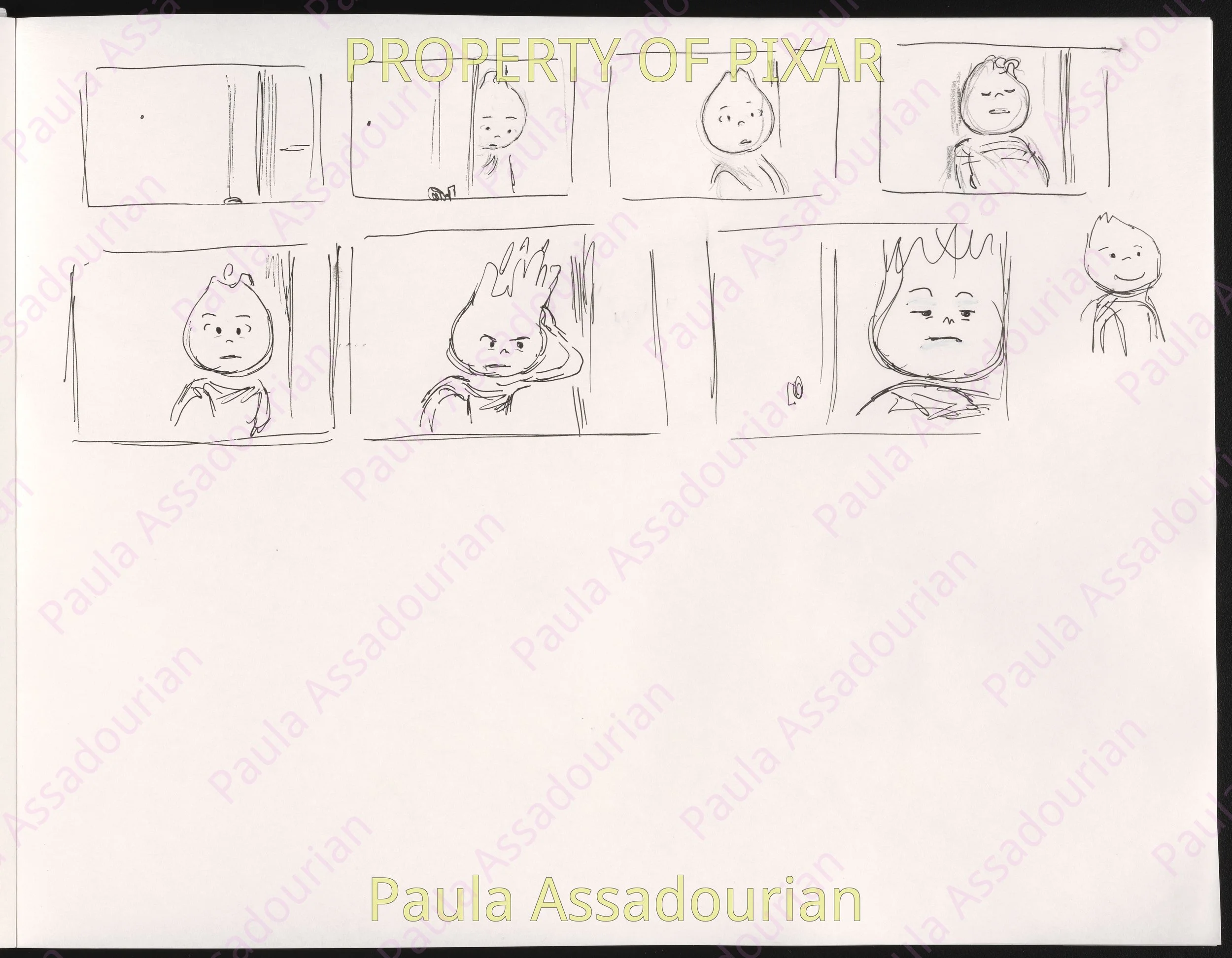 Thumbnails imagining what Wade and Ember’s first three dates would be. A lot of great ideas that made it into the movie are here: cheering for Lutz, the grittiness of the mud fight, and the private scene where Ember recognizes herself as being in love. Really proud of this work and how it helped shape the final film! (Click on the images to expand.)